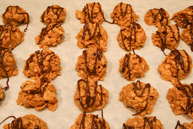 How's that for a name? I just had to add "addicting" in the title because....well....they are. I saw a recipe on Pinterest for some amazing no bake cornflake PB cookies. It only had four ingredients--I'm sure you know the one I'm talking about (sugar, corn syrup, peanut butter, and cornflakes). We liked it okay. I felt like it was lacking some depth. So I went on a hunt and found many variations on that recipe. I combined a few to come up with my own version that wasn't quite so overwhelmingly peanut butter-y. Don't get me wrong--peanut butter is still a strong player in this version. It just doesn't taste like it's the only ingredient like the other recipe did. And I think the added ingredients do add more depth to the flavors. Let me know what you think if you've tried the other version.